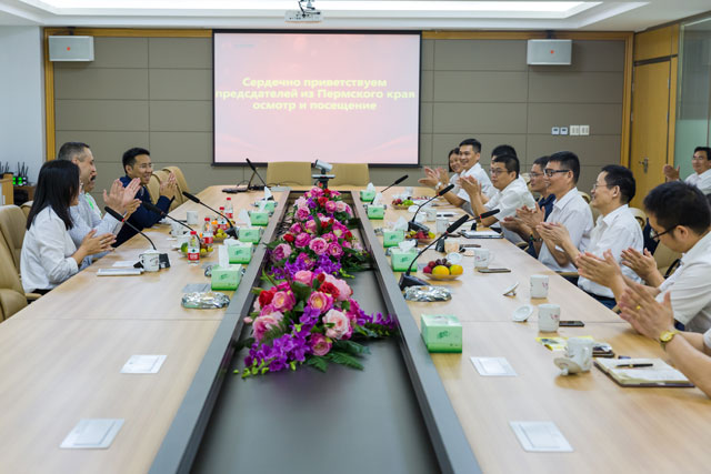 在經過實地參觀考察后,俄羅斯客人與我方陪同人員在集團會議室召開技術交流座談會。魯主席首先致歡迎辭并介紹了企業的基本情況、露笑新能源產業發展前景,表示將深度融入“一帶一路”建設,努力加強與俄地方政府的交流合作,推進特色項目合作互補,實現互利共贏,進一步加強與俄羅斯地區和企業之間的友好關系。